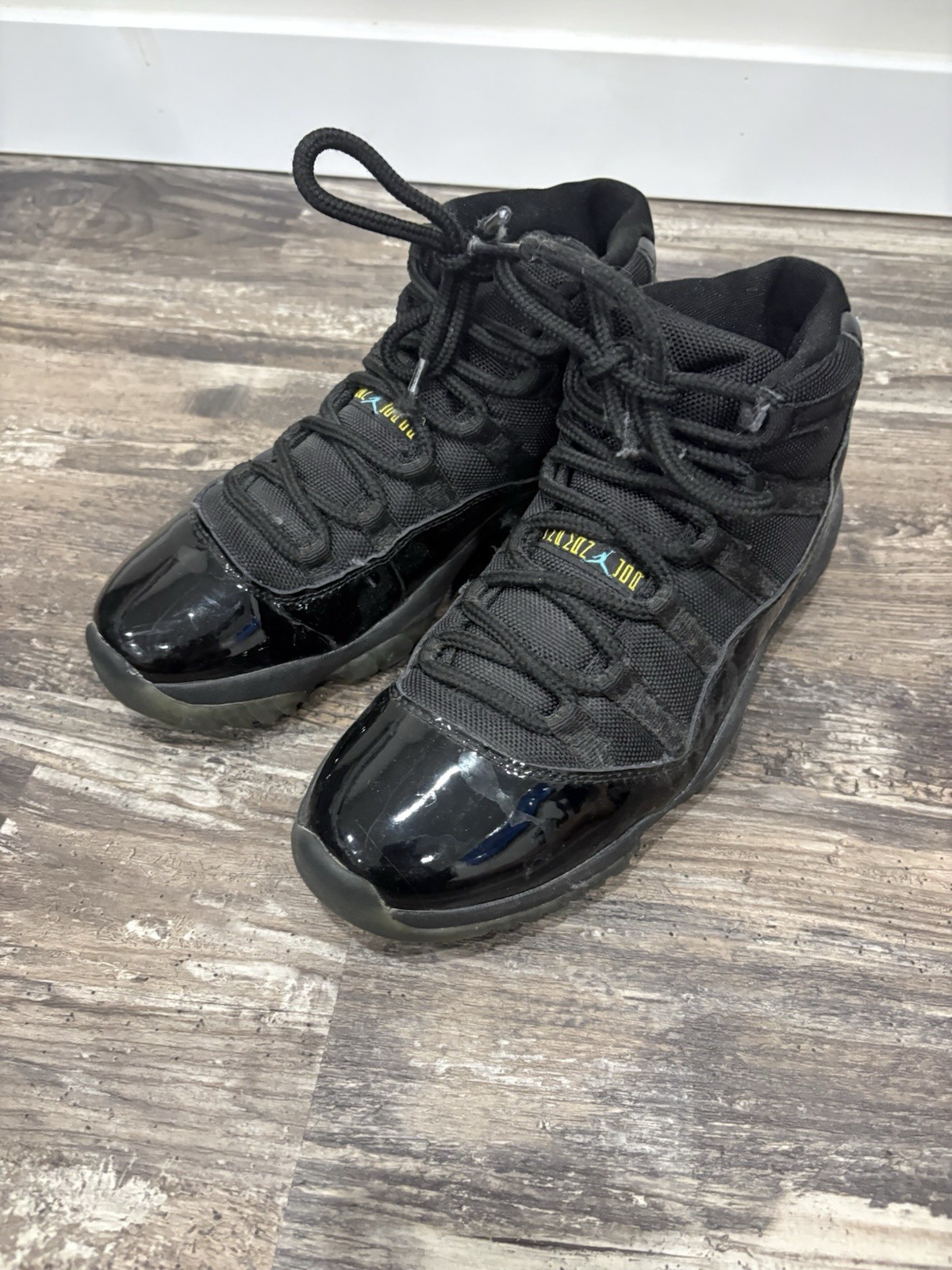 The Air Jordan 11 Black Men’s Size 8 is a stylish and iconic sneaker from the Jordan brand. Featuring a sleek black design with patent leather upper material, this athletic shoe is part of the Air Jordan product line. With a unique Gamma Blue nickname and a varsity maize accent, this model is a standout choice for sneaker enthusiasts looking for a fashionable and high-quality footwear option.