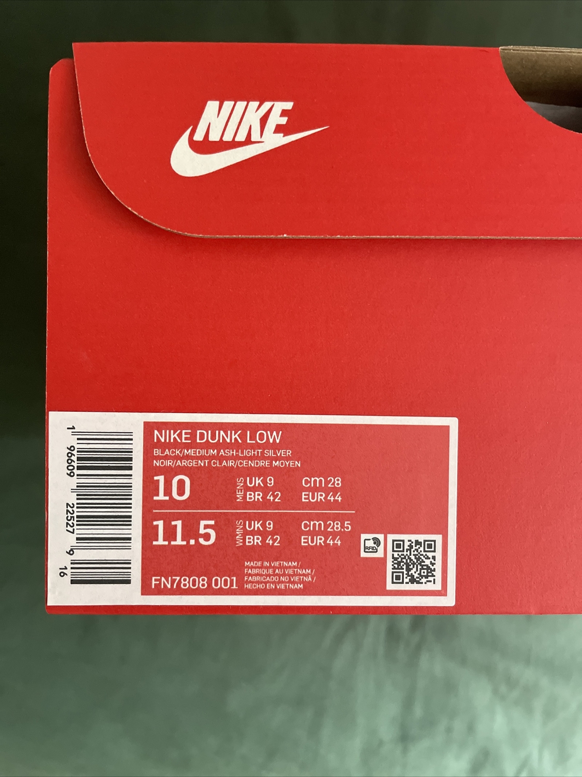 Nike Dunk Low Black/Medium Ash-Light Silver Noir. Condition is New with box. Dispatched with eBay Delivery – Evri, DPD & UPS Next Day.